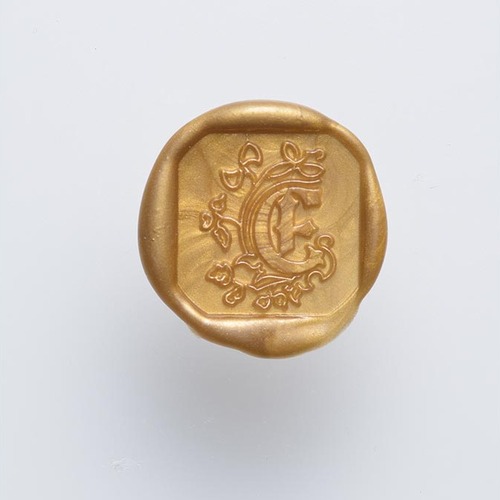 This Herbin Seal is made from 5mm thick brass and the handle is varnished wood. Handle is screwed into the brass. Seal leaves the letter impression with a square around it in the wax. 20x20mm. Illuminated letter E.