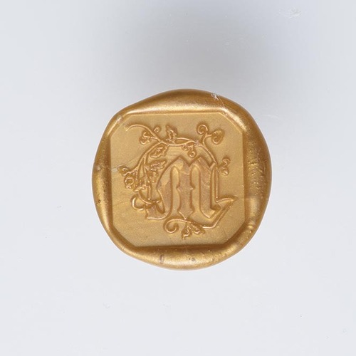 This Herbin Seal is made from 5mm thick brass and the handle is varnished wood. Handle is screwed into the brass. Seal leaves the letter impression with a square around it in the wax. 20x20mm. Illuminated letter M.
