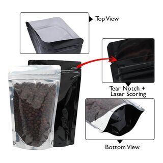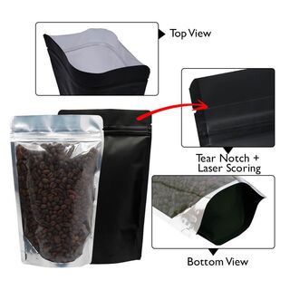 Stand Up Pouch Clear/Matt Black 250g w Zip no Valve Carton 500